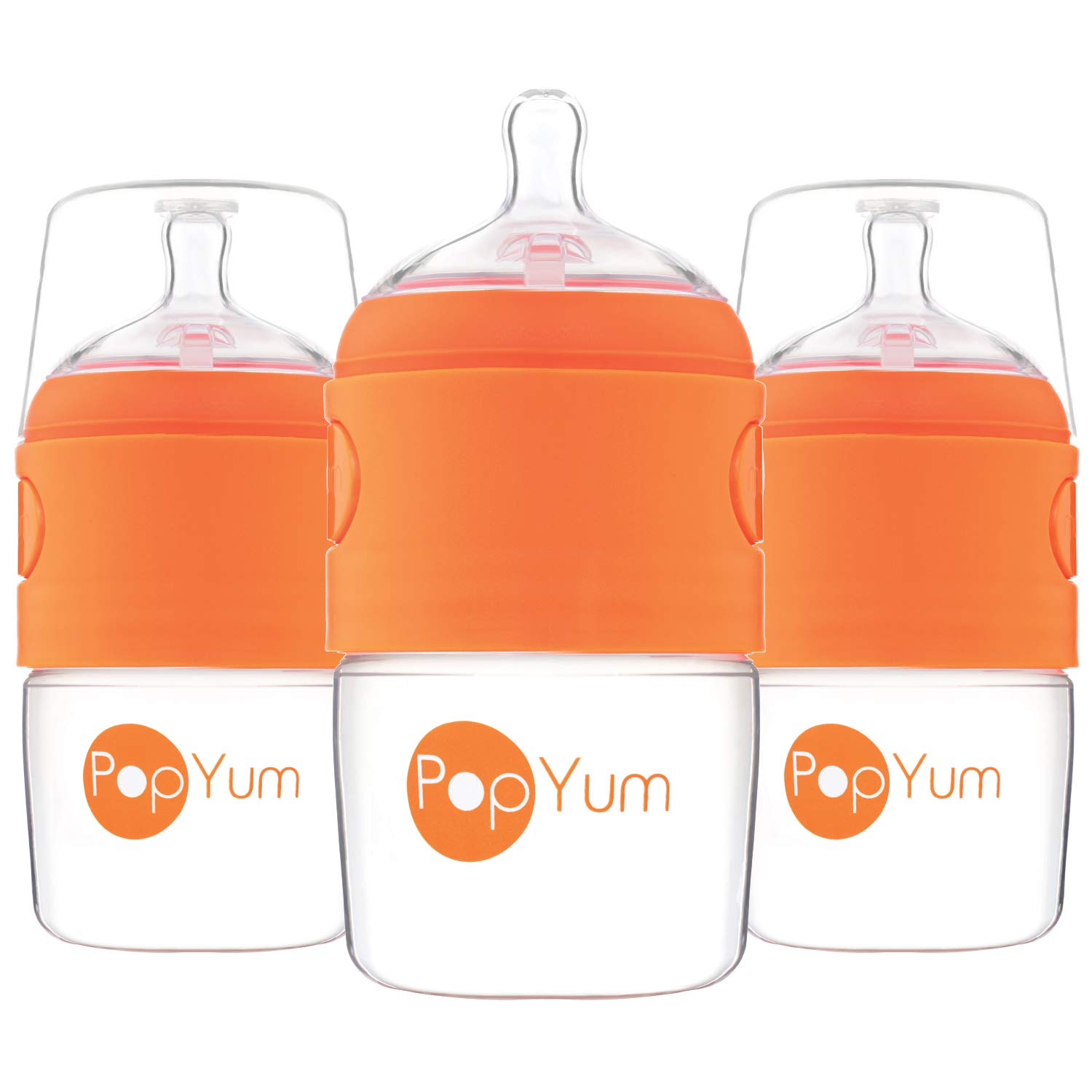 INCLUI: três mamadeira de 150ml. Mamadeiras PopYum (150 ml) com bico anti-cólica de fluxo lento no 1 e um funil que facilita o carregamento da fórmula e impede que a fórmula caia na câmara de água.